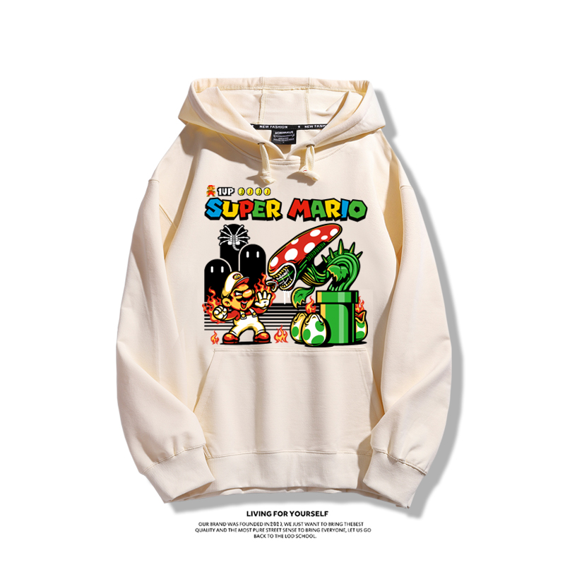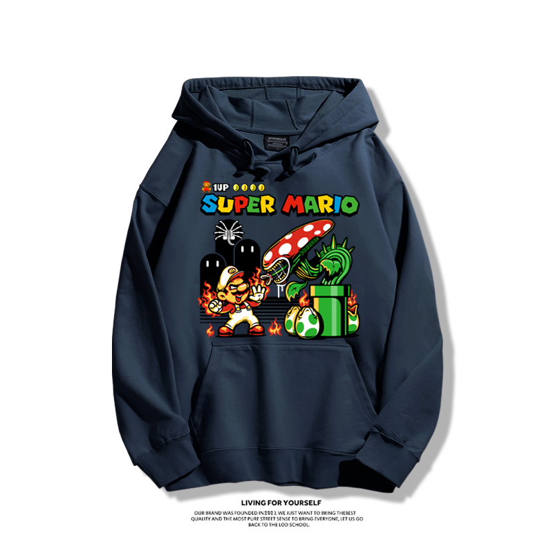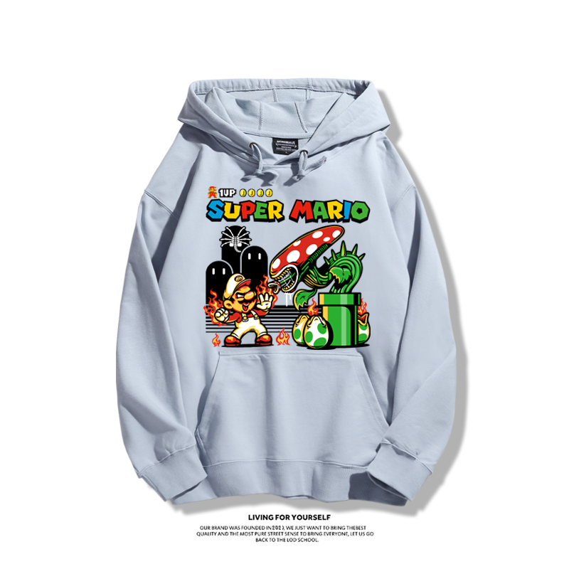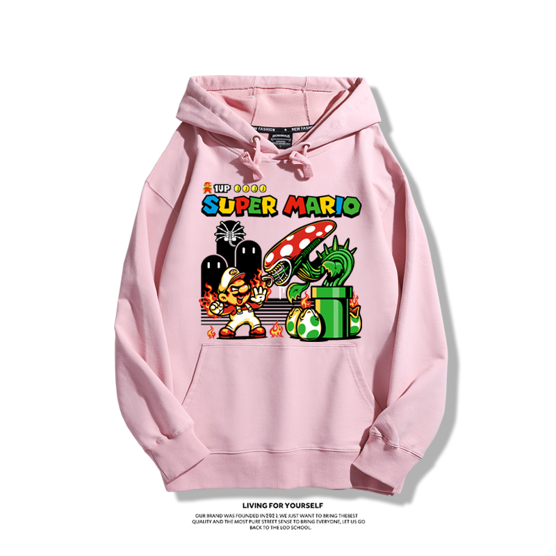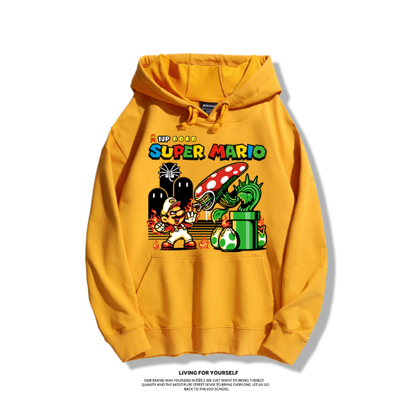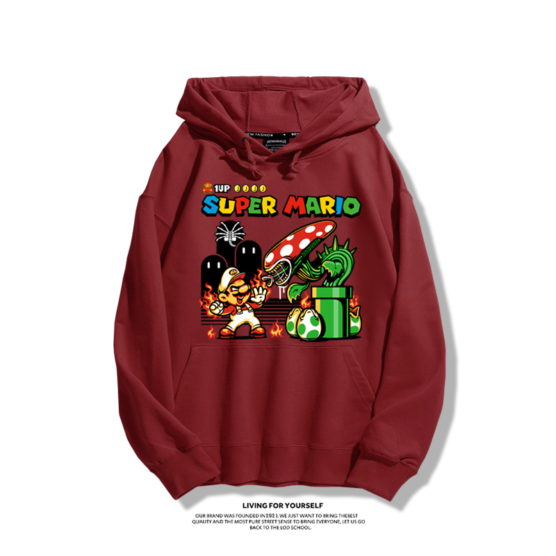 Super Mario co-branded sweatshirt 2024 autumn and winter new parent-child couple wear thin velvet hooded sweatshirt