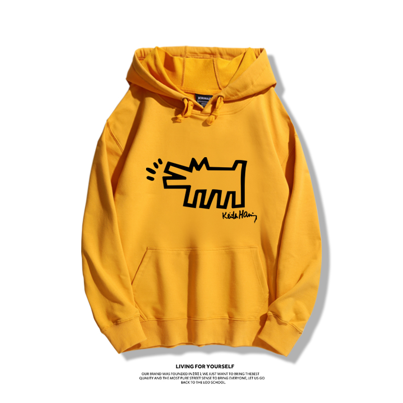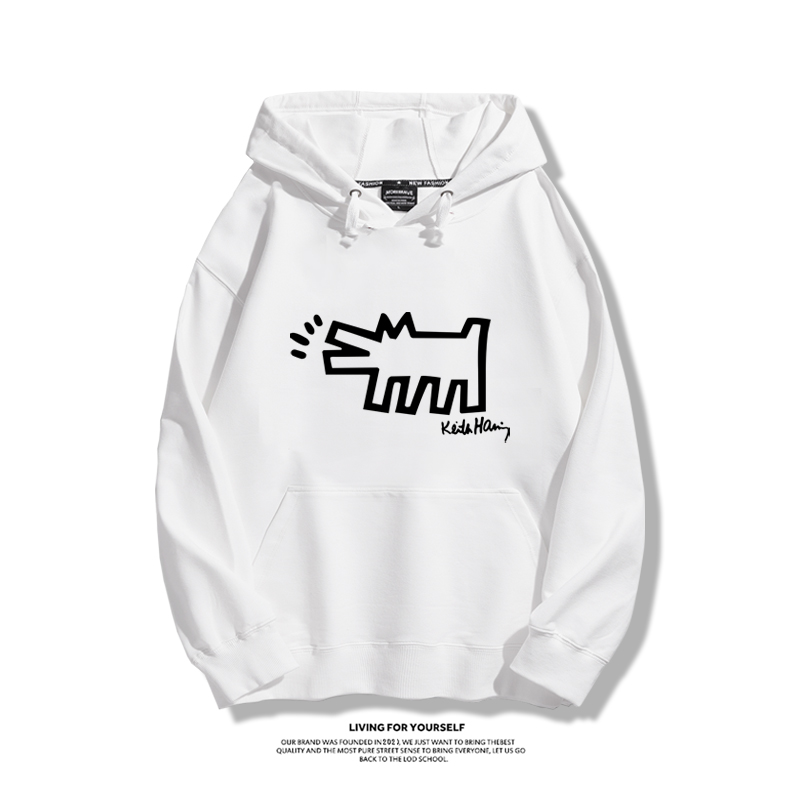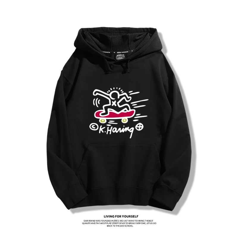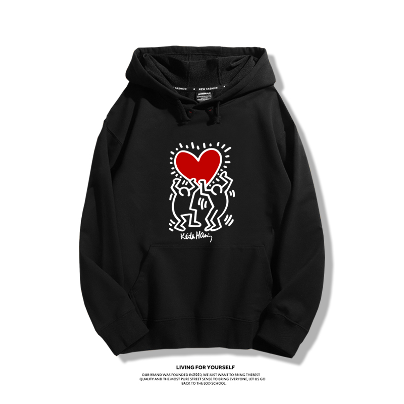 keith haring co-branded sweatshirt 2024 autumn and winter new parent-child couple wear thin velvet hooded sweatshirt