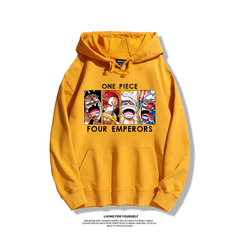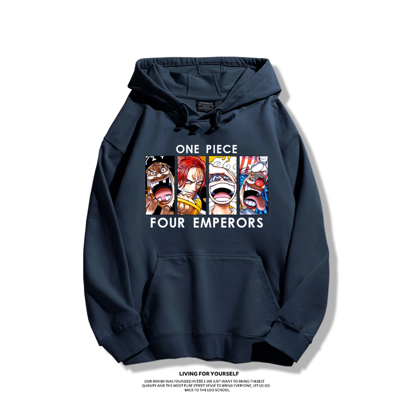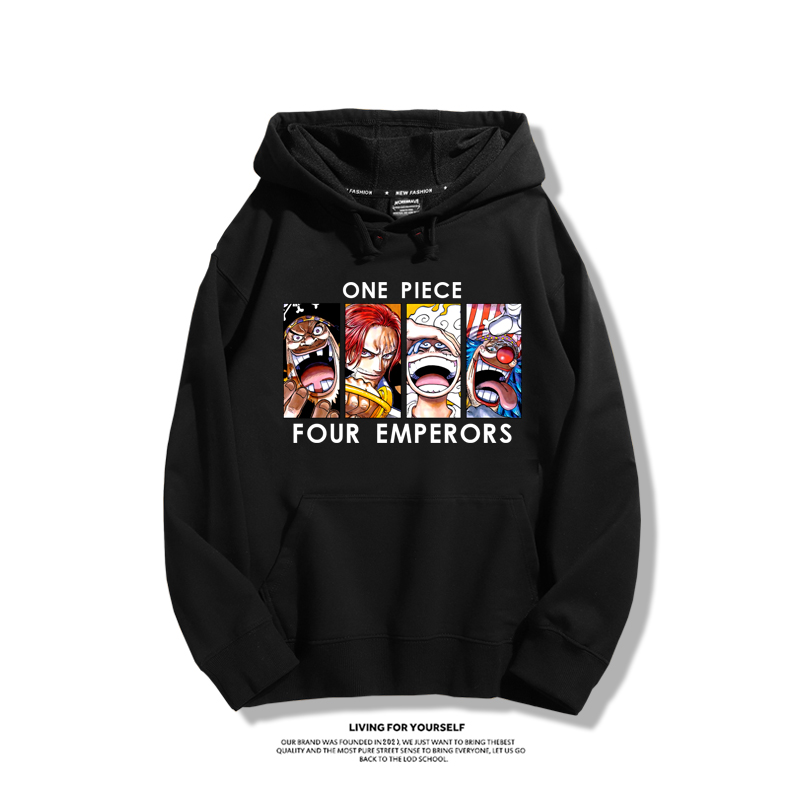 One Piece Four Emperors Joint Sweatshirt 2024 Autumn and Winter New Parent-Child Couple Wear Thin Velvet Hooded Sweatshirt