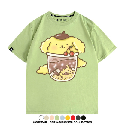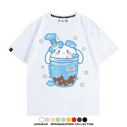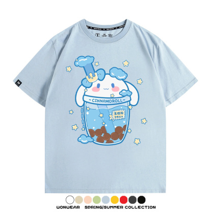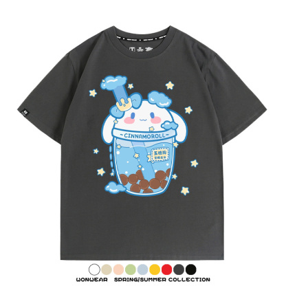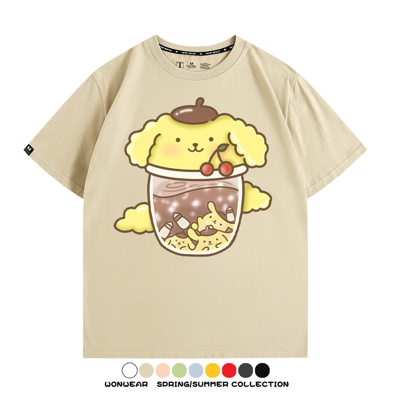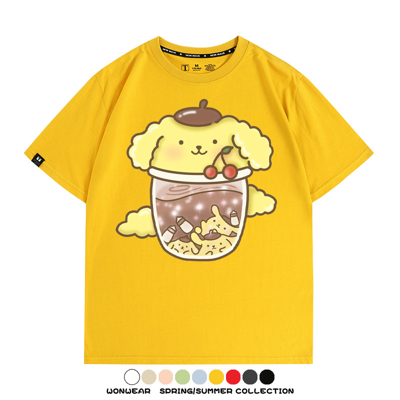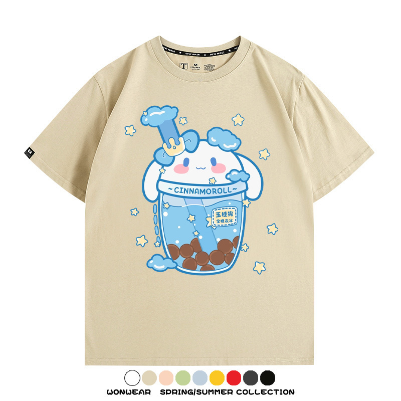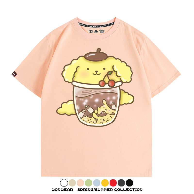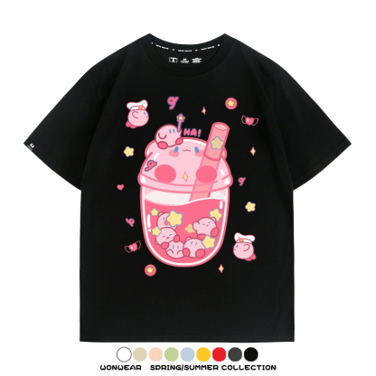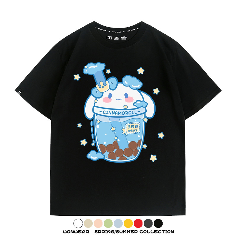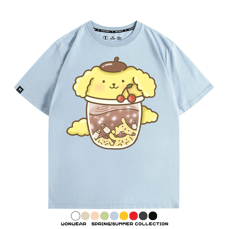 三麗鷗聯名情侶裝庫洛米玉桂狗星之卡比卡通短袖上衣服夏t恤衫男